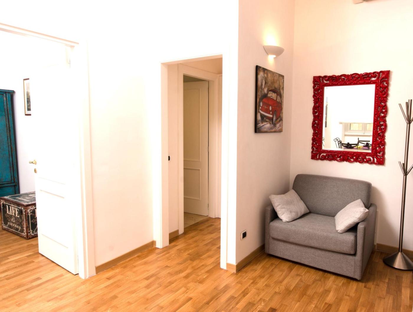 Questo appartamento con aria condizionata comprende 1 camera da letto, un soggiorno, una cucina con utensili, frigorifero e macchina da caffè, e 1 bagno con bidet e doccia. Presso questo appartamento troverete asciugamani e lenzuola in dotazione.