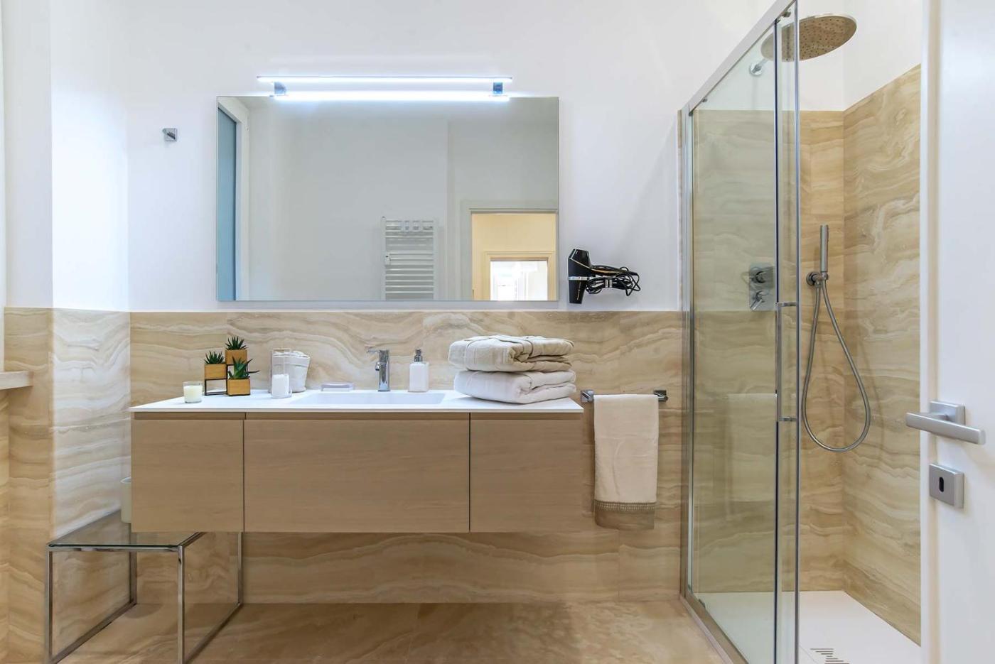 Appartamento con 2 Camere da Letto. The spacious apartment has 1 bedroom and 1 bathroom with a shower and free toiletries. Guests can make meals in the kitchen that features a stovetop, a refrigerator, a dishwasher and kitchenware. This apartment is air-conditioned and features a seating area with a flat-screen TV, a washing machine, a coffee machine, a dining area, as well as a wardrobe. The unit has 2 beds.