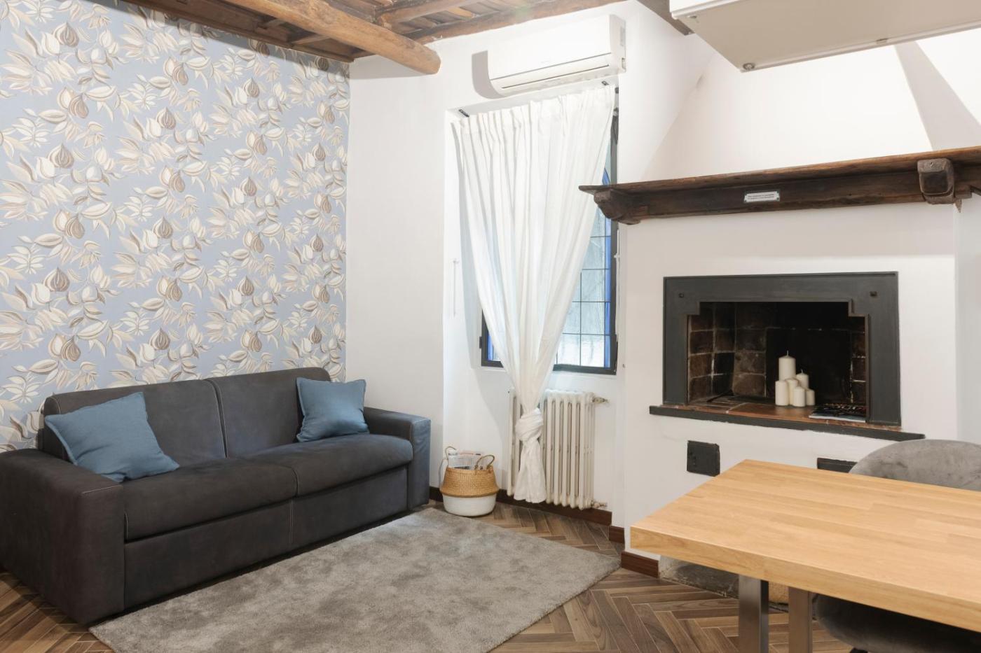 Appartamento con 1 Camera da Letto. The fireplace is the standout feature of this apartment. The well-equipped kitchen has a stovetop, a refrigerator, kitchenware and a toaster. The spacious air-conditioned apartment features a flat-screen TV, a private entrance, a coffee machine, a seating area as well as garden views. The unit has 2 beds.