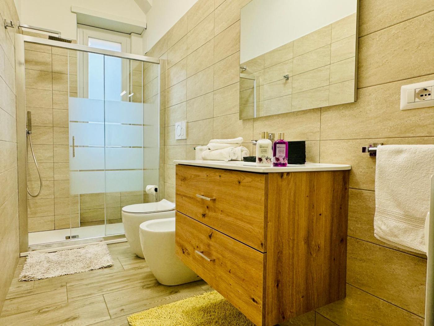 Appartamento con 2 Camere da Letto. The spacious apartment has 2 bedrooms and 1 bathroom with a shower and free toiletries. In the well-fitted kitchen, guests will find a stovetop, a refrigerator, kitchenware and a microwave. The air-conditioned apartment features a flat-screen TV with streaming services, a washing machine, a tea and coffee maker, a dining area as well as ancourtyard view. The unit has 3 beds.