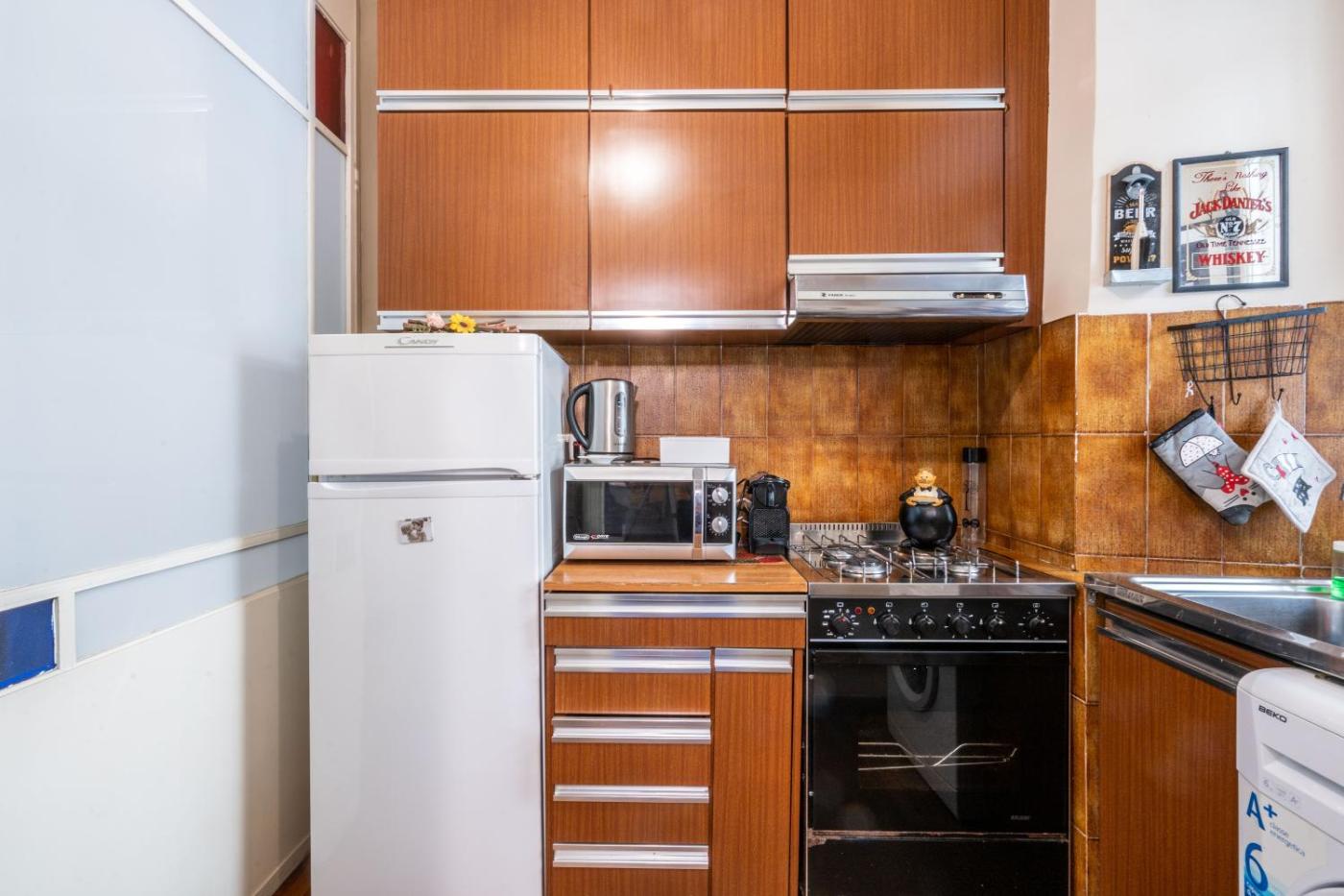 Questo appartamento con 2 camere da letto e aria condizionata presenta 1 bagno con bidet, doccia e asciugacapelli. La cucina ha frigorifero, microonde, macchina da caffè e bollitore elettrico.