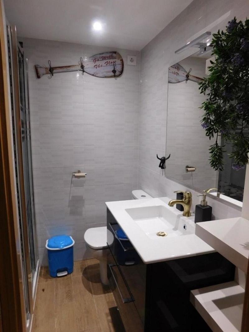 Questo appartamento con aria condizionata comprende 1 camera da letto e 1 bagno con bidet, doccia edi cortesia. Cè un’area salotto e una cucina con frigorifero.
