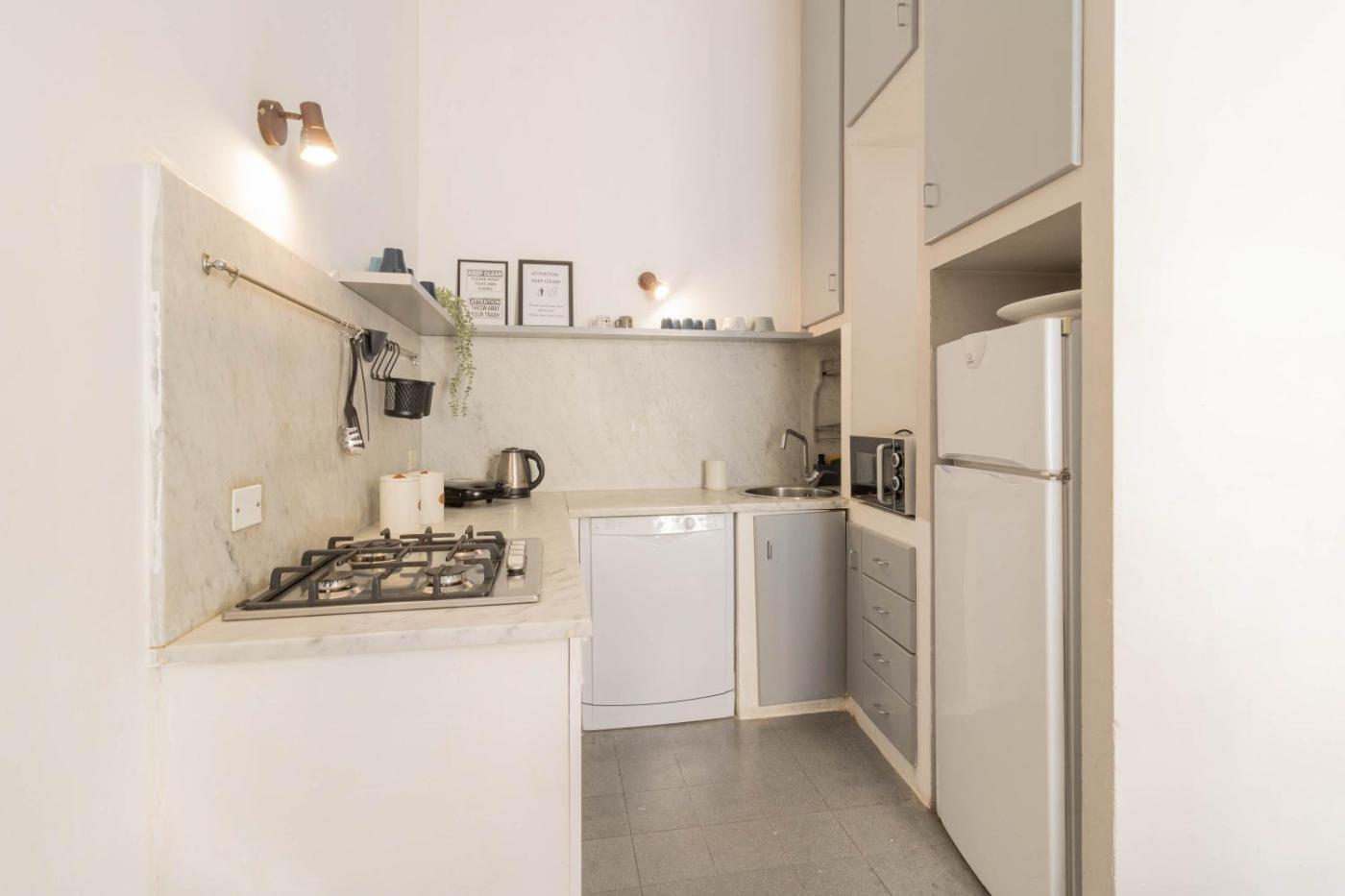 Questo appartamento con aria condizionata comprende 2 camere da letto, un soggiorno, una cucina con utensili, frigorifero e macchina da caffè, e 1 bagno con bidet e asciugacapelli. Presso questo appartamento troverete asciugamani e lenzuola tra i servizi offerti.