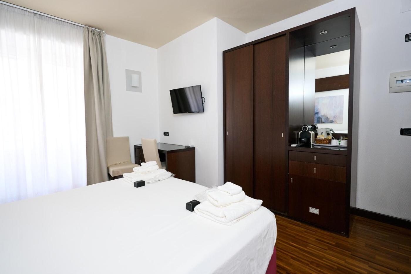 Camera Deluxe. The double room includes a private bathroom, well-fitted with a bath, a shower, a bidet, a hairdryer and slippers. The air-conditioned double room offers a flat-screen TV, a minibar, a tea and coffee maker, a wardrobe as well as city views. The unit offers 1 bed. ;