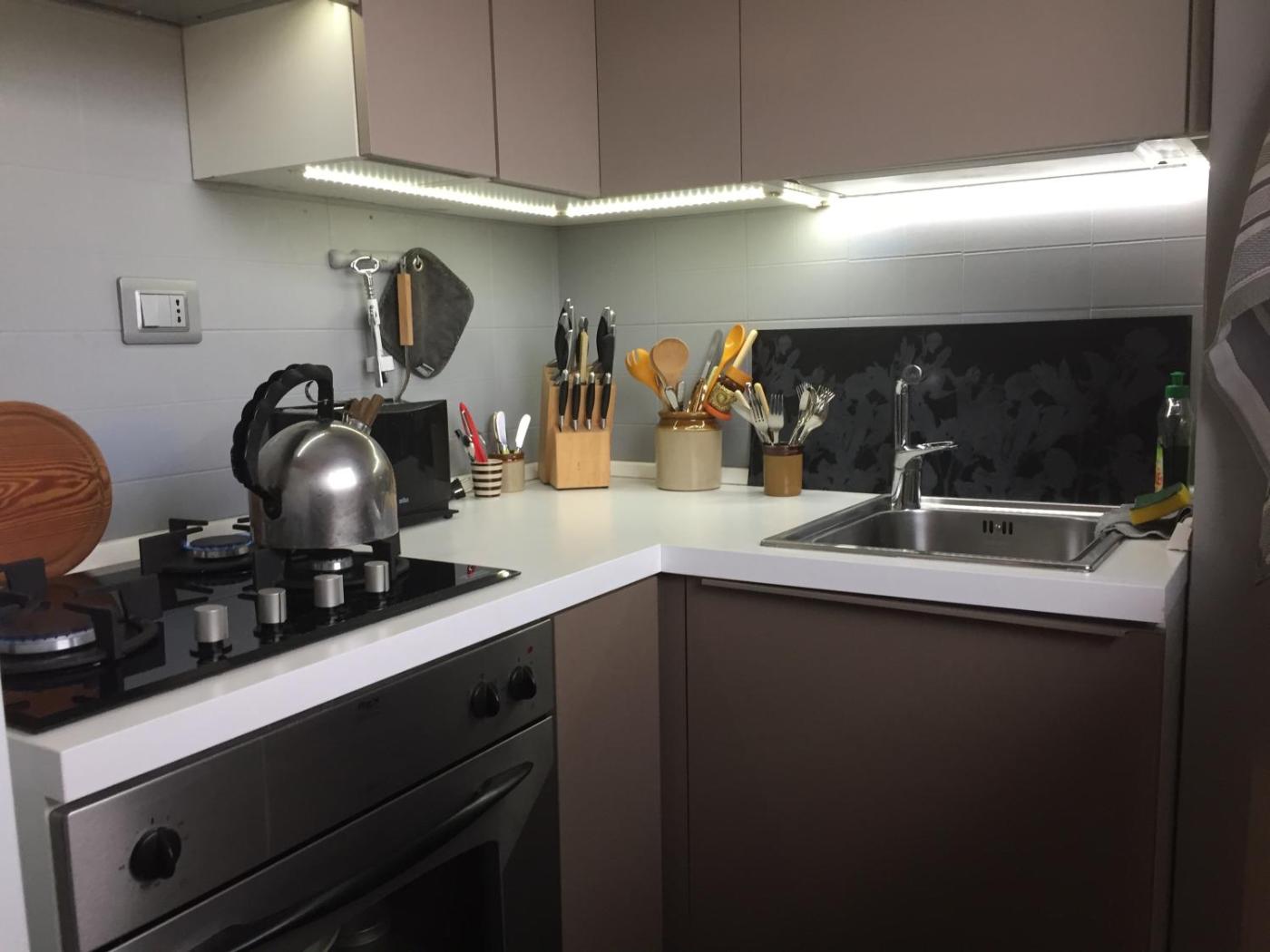 Questa casa vacanze ha 1 camera da letto, 1 bagno, lenzuola, asciugamani, una TV a schermo piatto con canali satellitari, un angolo cottura con utensili e una terrazza con la vista sulla città .