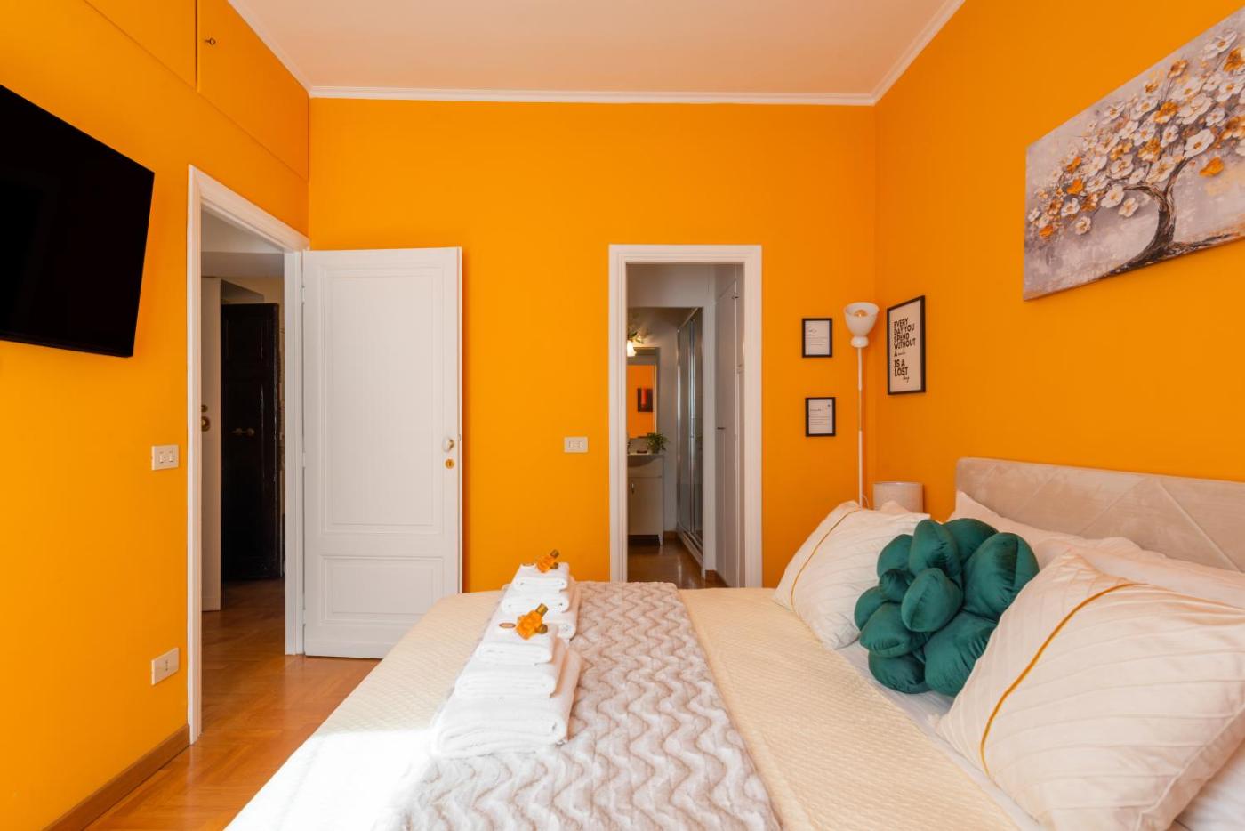 Appartamento Premium con 3 Camere da Letto. This spacious apartment comprises 1 living room, 3 separate bedrooms and 2 bathrooms with a shower and free toiletries. The well-equipped kitchen has a stovetop, a refrigerator, kitchenware and an oven. The apartment features parquet floors, a seating area with a flat-screen TV with streaming services, air conditioning, a washing machine, as well as a tea and coffee maker. The unit offers 4 beds.