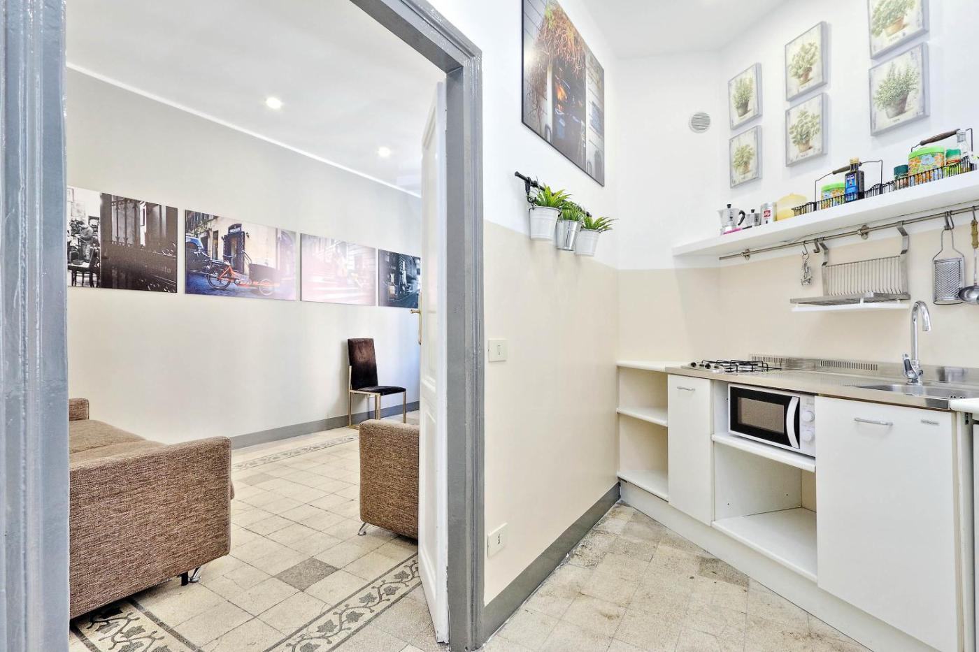 Questo appartamento con aria condizionata comprende 1 camera da letto, un soggiorno, una cucina con utensili, frigorifero e macchina da caffè, e 1 bagno con bidet e doccia. Presso questo appartamento troverete asciugamani e lenzuola in dotazione.