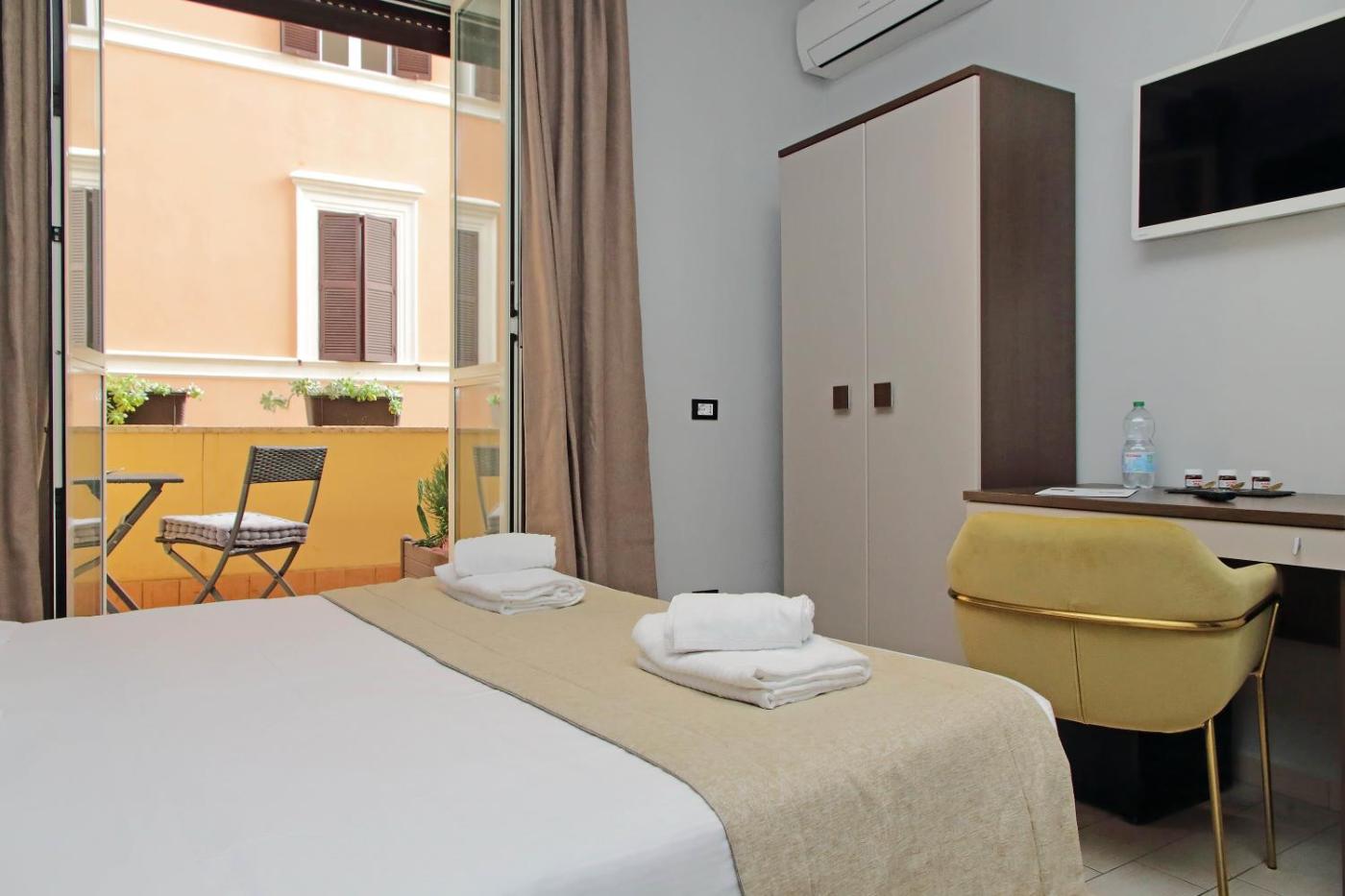 Nelle sistemazioni del Roma Suite Centro avrete a disposizione laria condizionata, una TV a schermo piatto e un bagno privato con asciugacapelli edi cortesia, e nelle aree comuni potrete utilizzare la connessione WiFi gratuita.