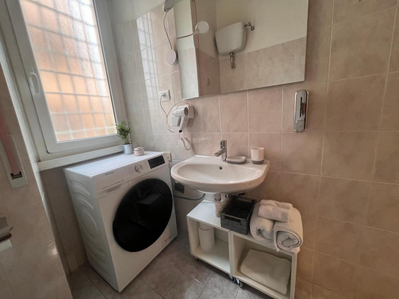 Appartamento con 1 Camera da Letto. This apartment comprises 1 living room, 1 separate bedroom and 1 bathroom with a bath and free toiletries. Guests can make meals in the kitchen that comes with a stovetop, a refrigerator, kitchenware and an oven. This apartment is air-conditioned and features a seating area with a flat-screen TV, a washing machine, a tea and coffee maker, a dining area, as well as a wardrobe. The unit offers 2 beds.
