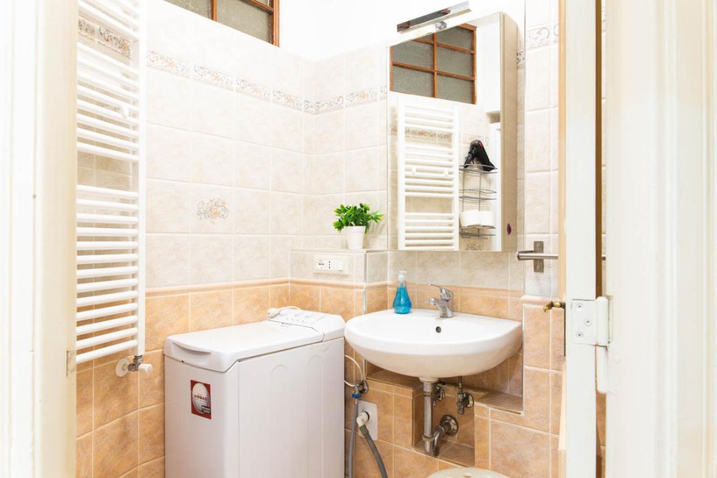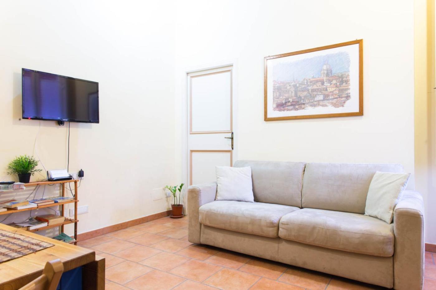 Appartamento con 1 Camera da Letto. Boasting a private entrance, this air-conditioned apartment includes 1 living room, 1 separate bedroom and 1 bathroom with a shower and a bidet. Guests can make meals in the kitchenette that has a stovetop, a refrigerator, kitchenware and an oven. The apartment has tiled floors, a seating area with a flat-screen TV, a dining area, a wardrobe as well as ancourtyard view. The unit has 2 beds.