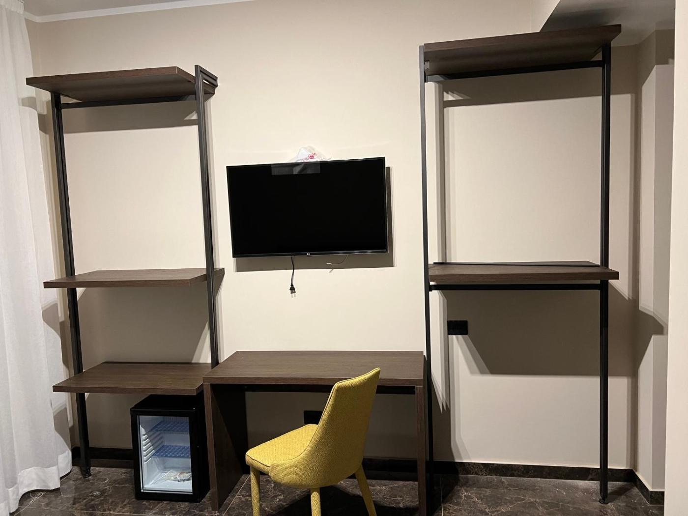 Camera Tripla. Camera tripla dotata di bagno privato con doccia, bidet, asciugacapelli edi cortesia. Dispone inoltre di aria condizionata, TV a schermo piatto,per la preparazione di tè e caffè, armadio, cassaforte e vista sulla città . L’unità presenta 2 letti. ;