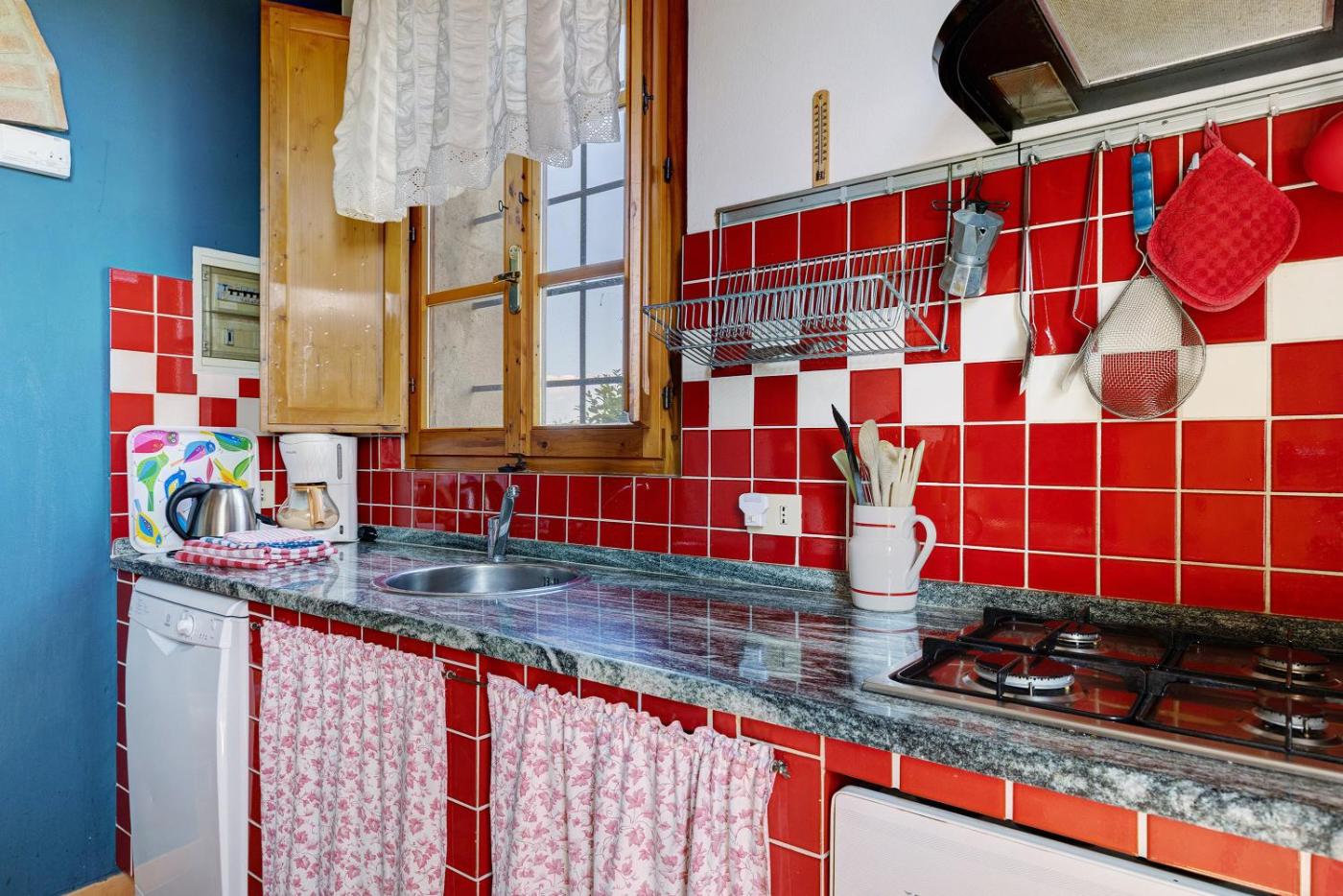 Questa casa vacanze con 2 camere da letto e aria condizionata presenta 1 bagno con doccia, vasca da bagno edi cortesia. La cucina comprende lavastoviglie, forno e microonde, più macchina da caffè e bollitore elettrico.