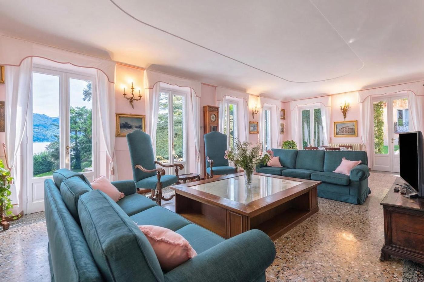 Questa villa dispone di 10 camere da letto, 10 bagni, lenzuola, asciugamani, una TV con canali satellitari, una zona pranzo, una cucina con utensili e una terrazza con vista sul lago.