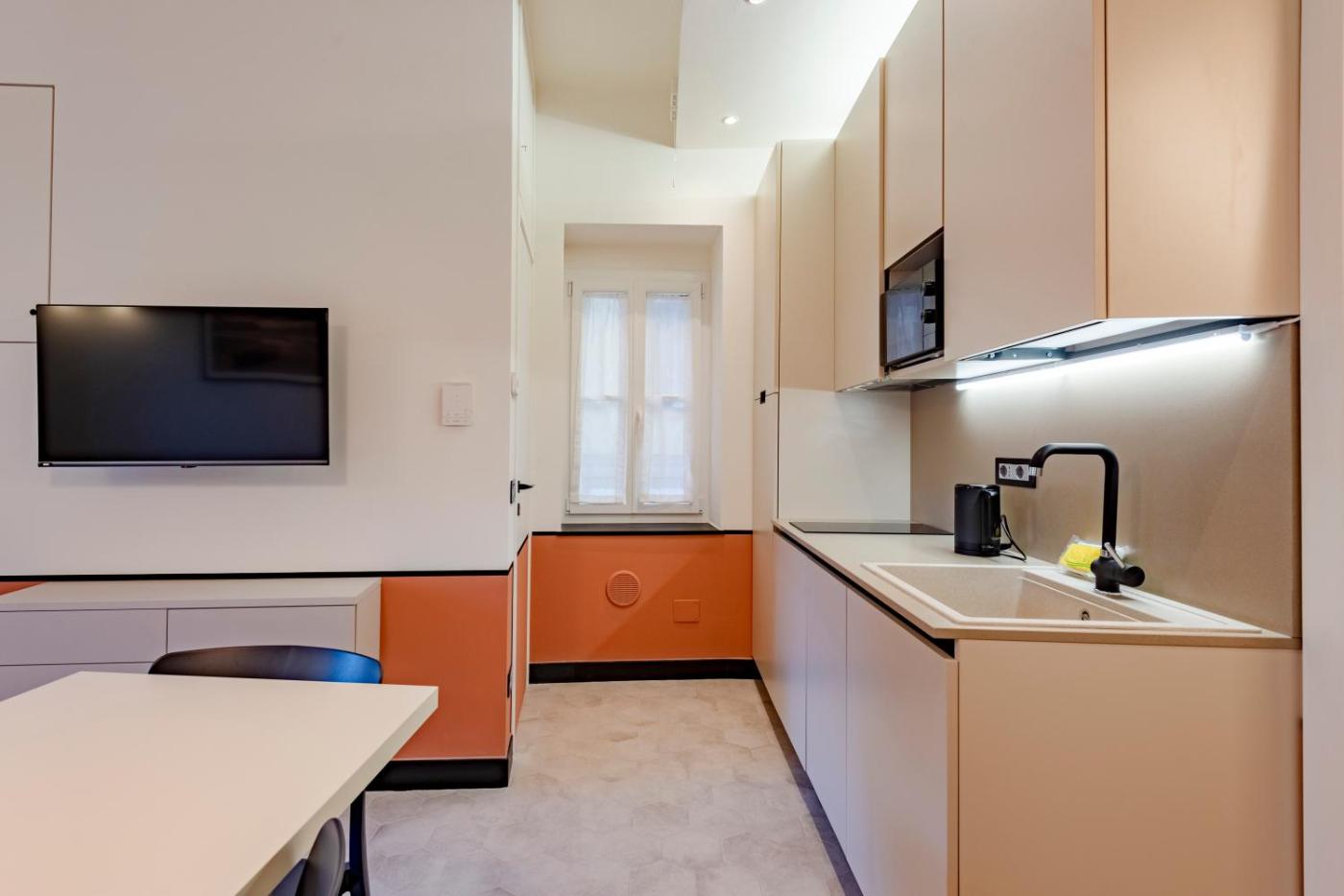 Questo appartamento con aria condizionata comprende 2 camere da letto, un soggiorno, una cucina con utensili, frigorifero e macchina da caffè, e 1 bagno con bidet e doccia. Presso questo appartamento troverete asciugamani e lenzuola in dotazione.