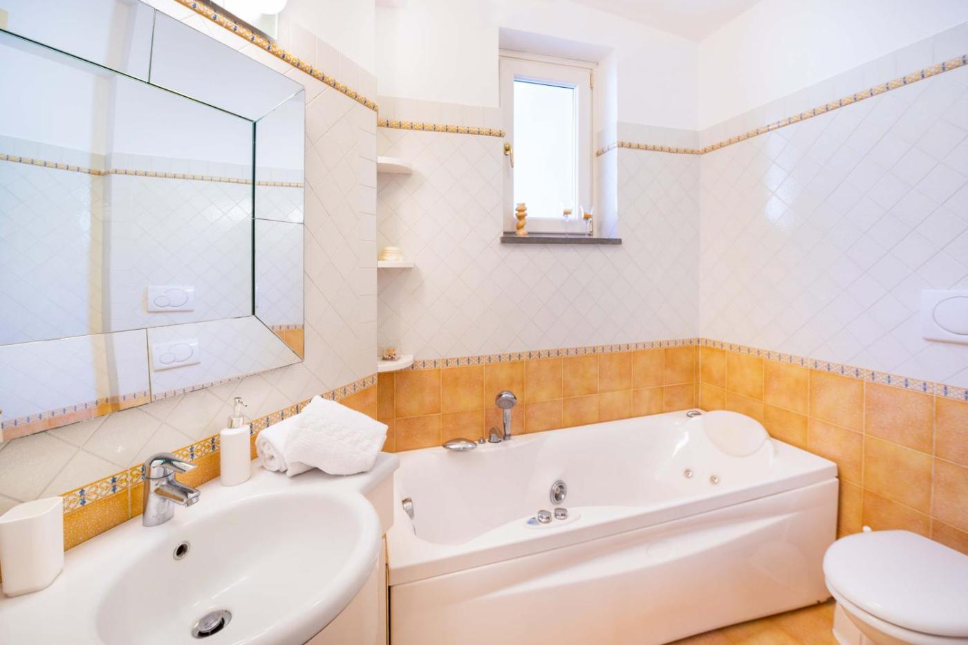 Villa con Vista Mare. Boasting a private entrance, this air-conditioned villa features 1 living room, 3 separate bedrooms and 2 bathrooms with a bath and a shower. Guests can make meals in the kitchen that has a stovetop, a refrigerator, kitchenware and an oven. Featuring a terrace with sea views, this villa also features a washing machine and a flat-screen TV. The unit has 4 beds.