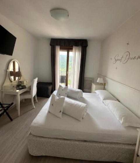 Camera Familiare con Vista Lago. This family rooms standout feature is the pool with a view. Offering free toiletries, this family room includes a private bathroom with a shower, a bidet and a hairdryer. The family room offers a flat-screen TV with satellite channels, a wardrobe, a safe deposit box, parquet floors as well as lake views. The unit offers 4 beds. ;