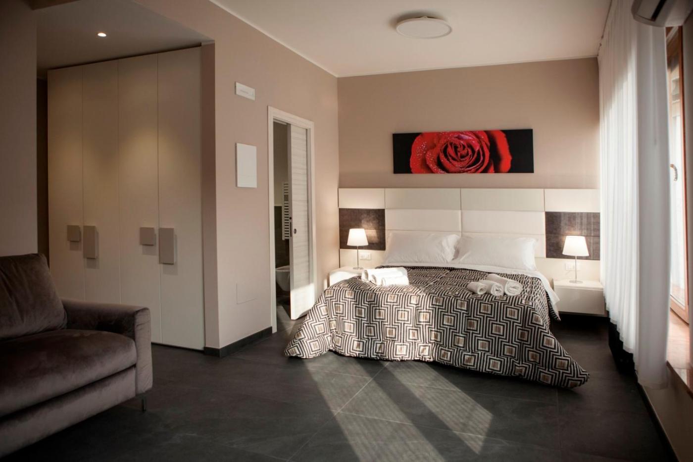 Camera Matrimoniale Deluxe. Offering free toiletries, this double room includes a private bathroom with a shower, a bidet and a hairdryer. The spacious air-conditioned double room offers a flat-screen TV with cable channels, a private entrance, soundproof walls, a tea and coffee maker as well as ancourtyard view. The unit offers 2 beds.